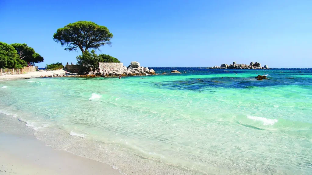 Cette plage d’environ 500 mètres offre un cadre plus intimiste que la grande plage de Calvi. Les arbres centenaires procurent une ombre naturelle appréciable lors des chaudes journées d’été, créant un environnement agréable pour les familles.